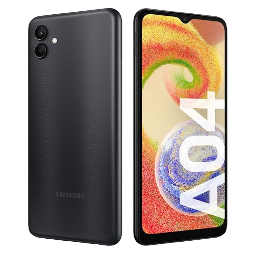 El Samsung Galaxy A04 combina pantalla amplia de 6.5”, 128GB de almacenamiento, cámara de 50MP y una batería de 5000 mAh que te acompaña todo el día, ideal para redes sociales, fotos y uso diario.